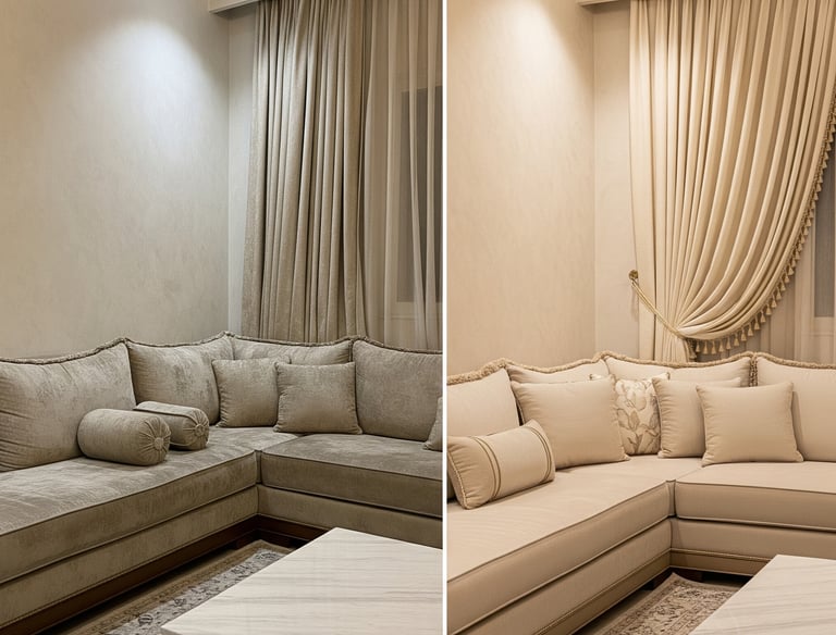 نقدم تنجيد، تفصيل أثاث، وستائر بأعلى جودة وسرعة في التسليم
