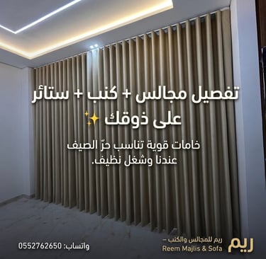 Are you looking for comfortable and stylish sofas? At Reem Majlis, we offer the best upholstery and custom sofa services as per your request. Call us now: 0552762650"
