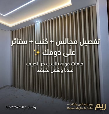 Design your home furniture yourself with the custom made service from Reem Majlis & Sofa. Precision in execution and speed in delivery. Mobile: 0552762650"